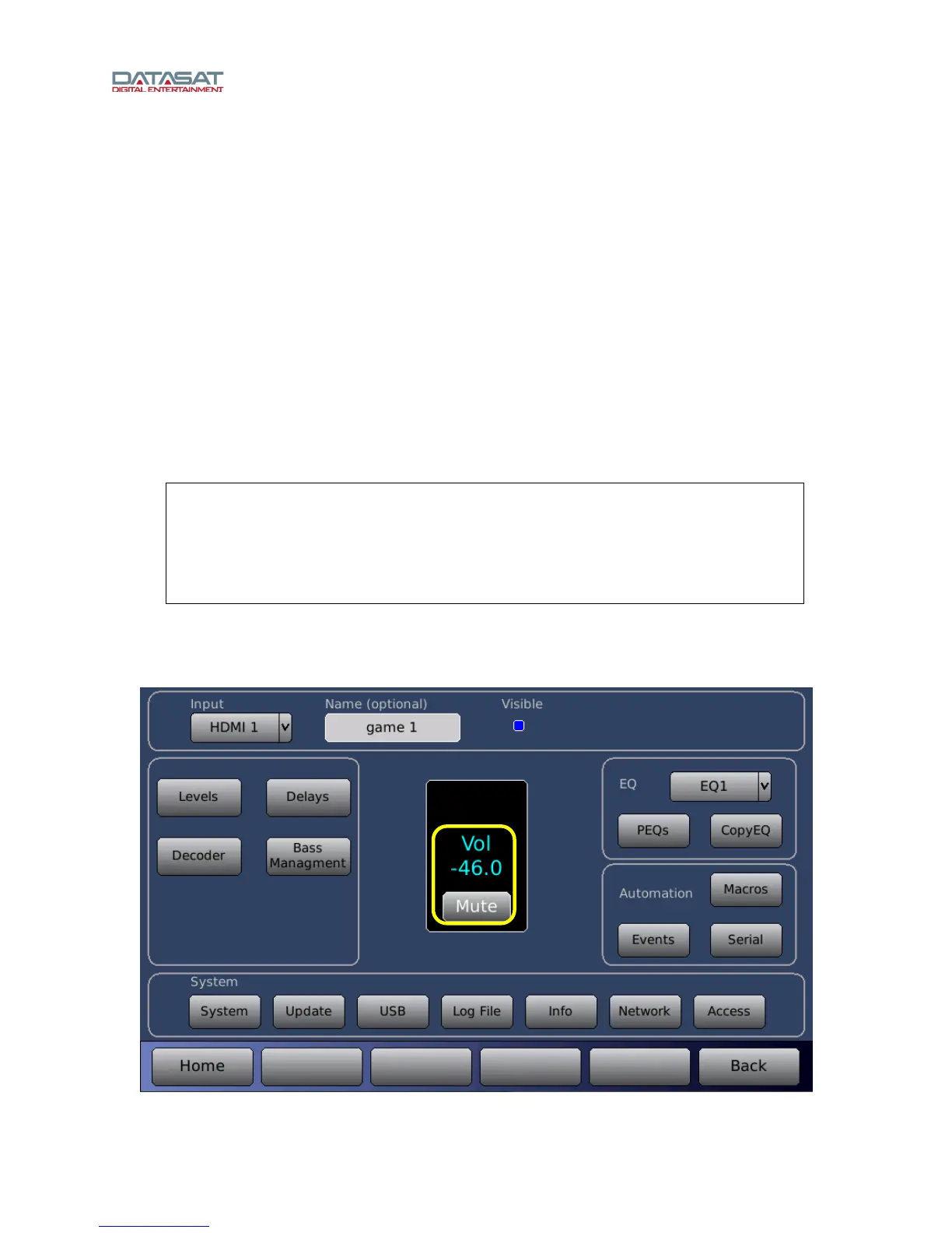 playback operating mode are available through the IR control, automation control, or touchscreen display.