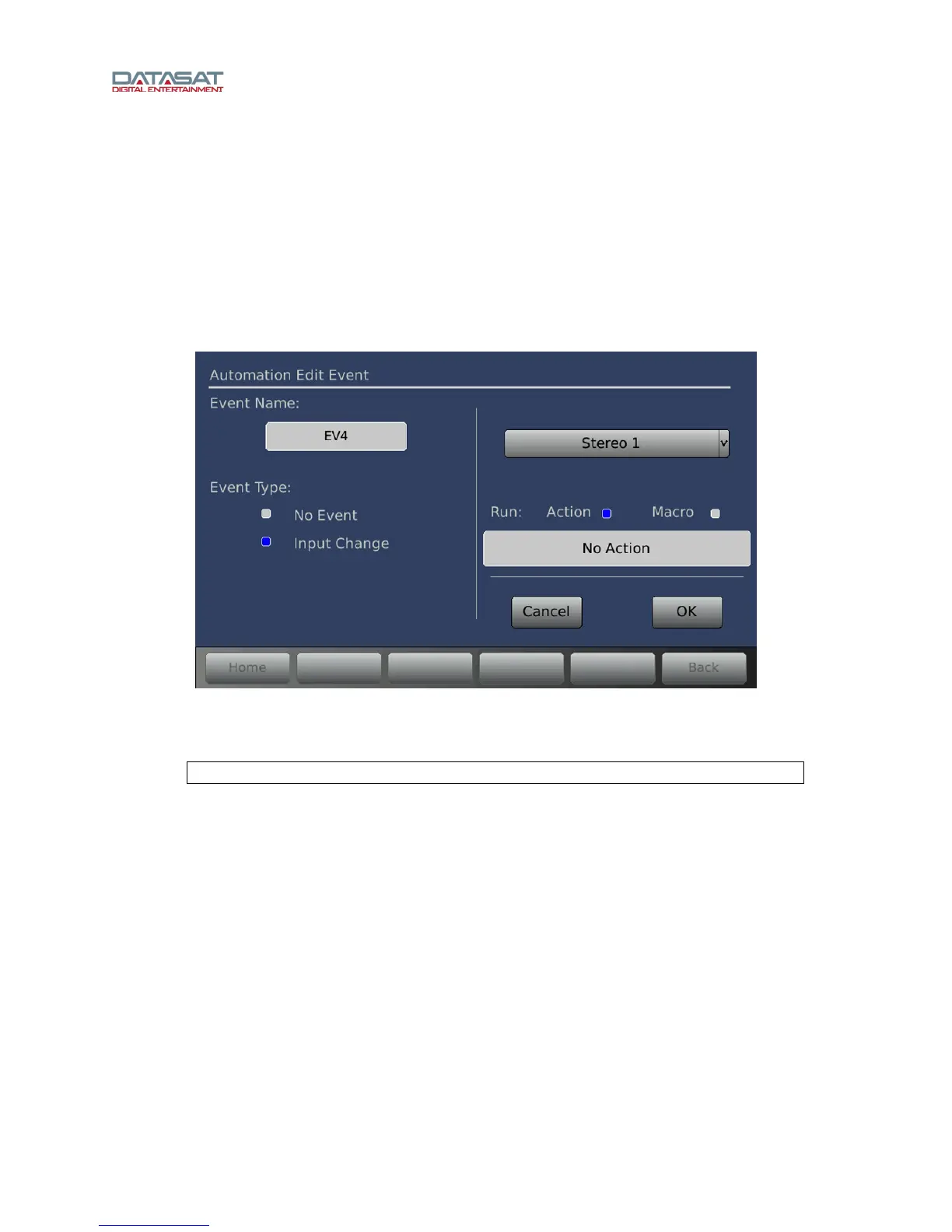 • Touch the Input Change button to set up the Event or change its actions. The screen will