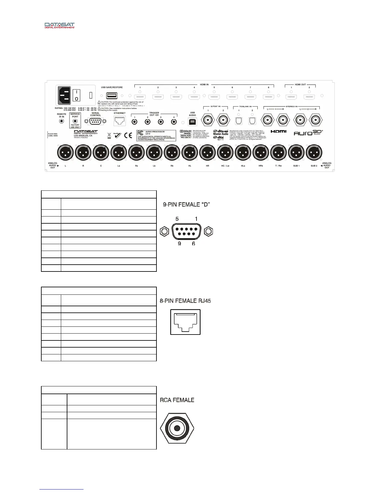 This appendix lists the pin-out of all of the connectors on the back panel of the LS10 Audio