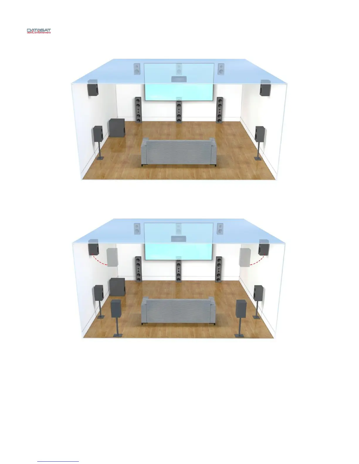 For large rooms, such as those with an acoustically transparent screen, Auro 11.1 completes the height layer