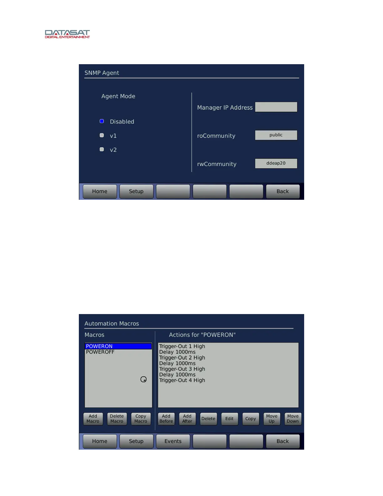 contains an Events button to allow easy navigation between the Events screen and the Macros screen