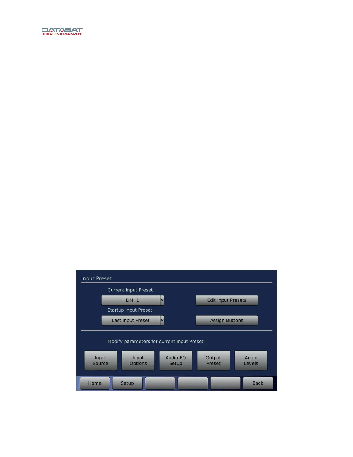 Figure 18. Input Preset Screen