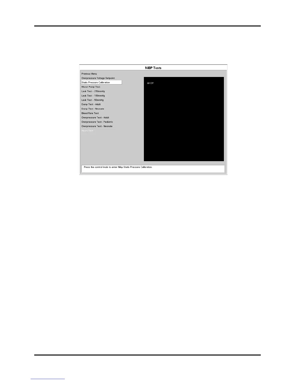 2. Rotate the control knob to highlight the static pressure calibration. Once the static