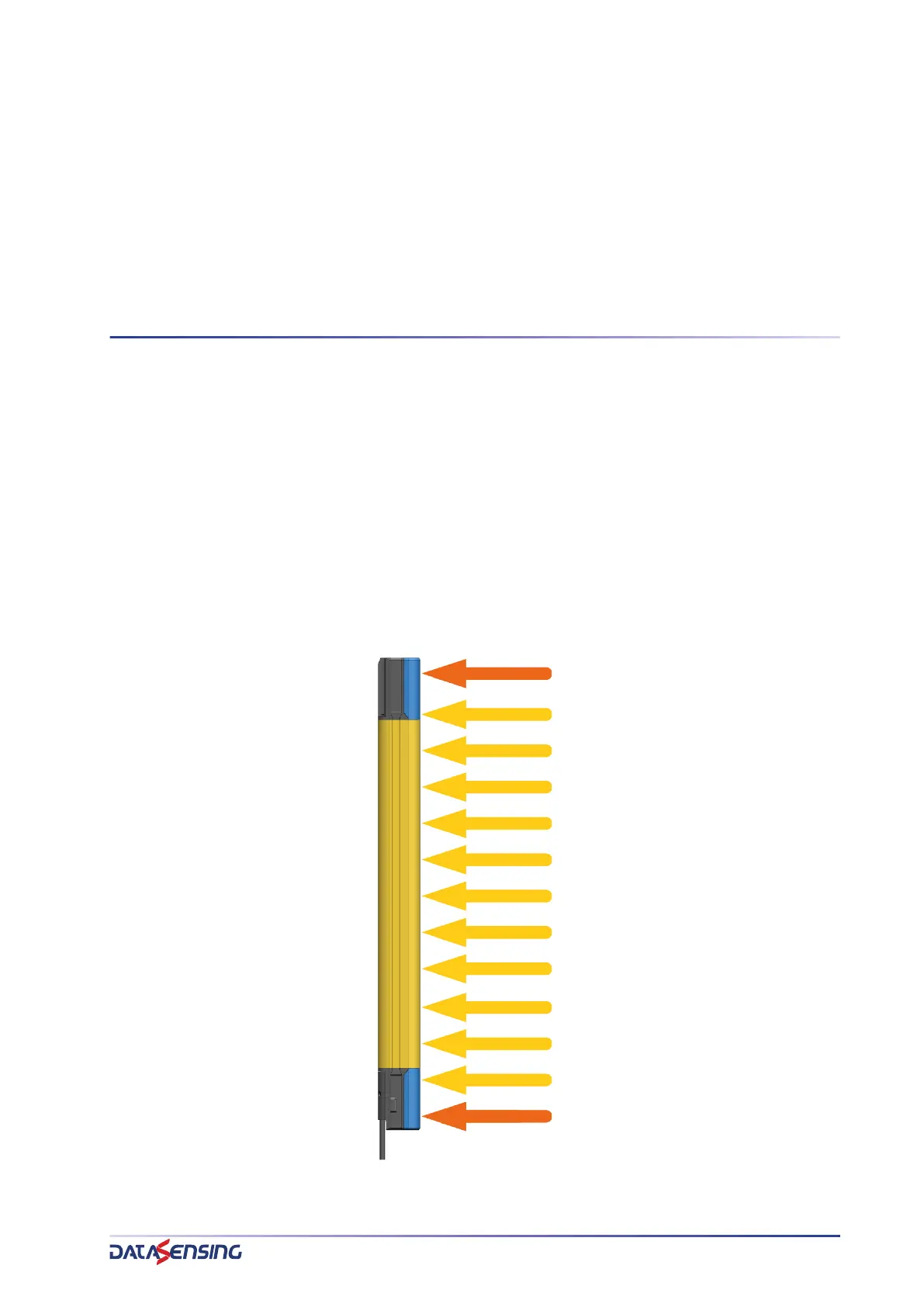The figure shows that the first beam is located at the bottom edge of the light curtain,