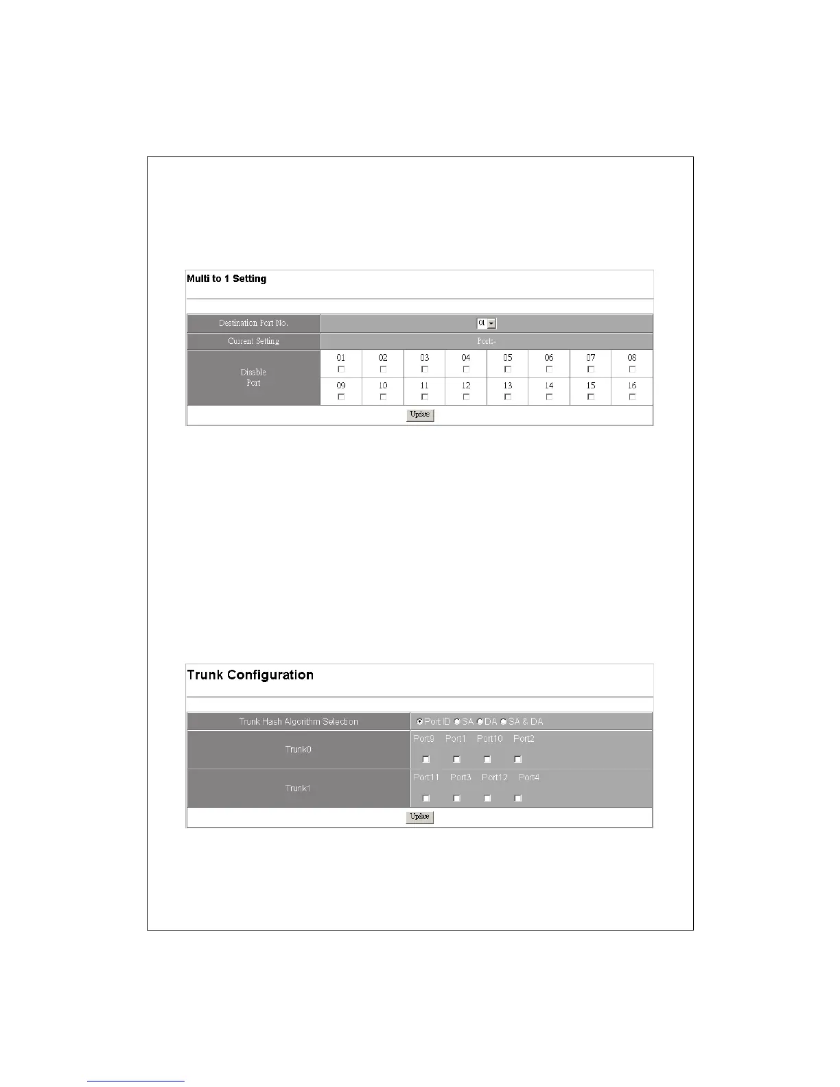 To set up the Port trunk groups:
