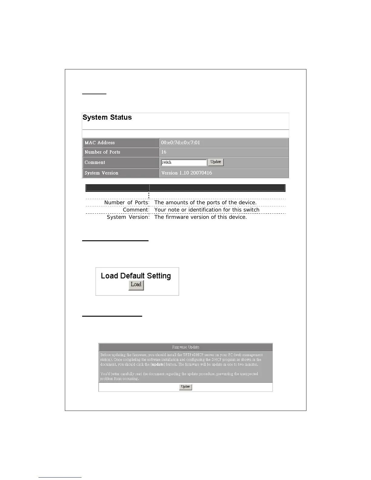 Use this page to update a new firmware for this device. Please note that you