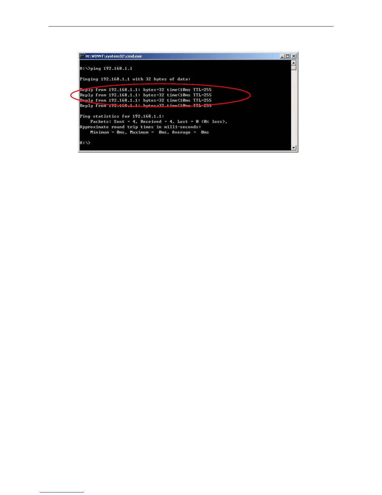 Note 3:The returned values of ping command in the following format show the standard of “reachable”