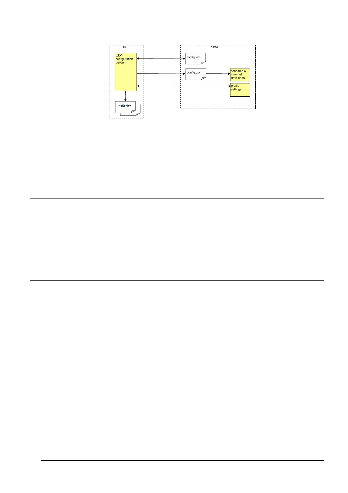 • dEX retrieves the configuration from the logger by reading back the config.xml file and the profile settings. It