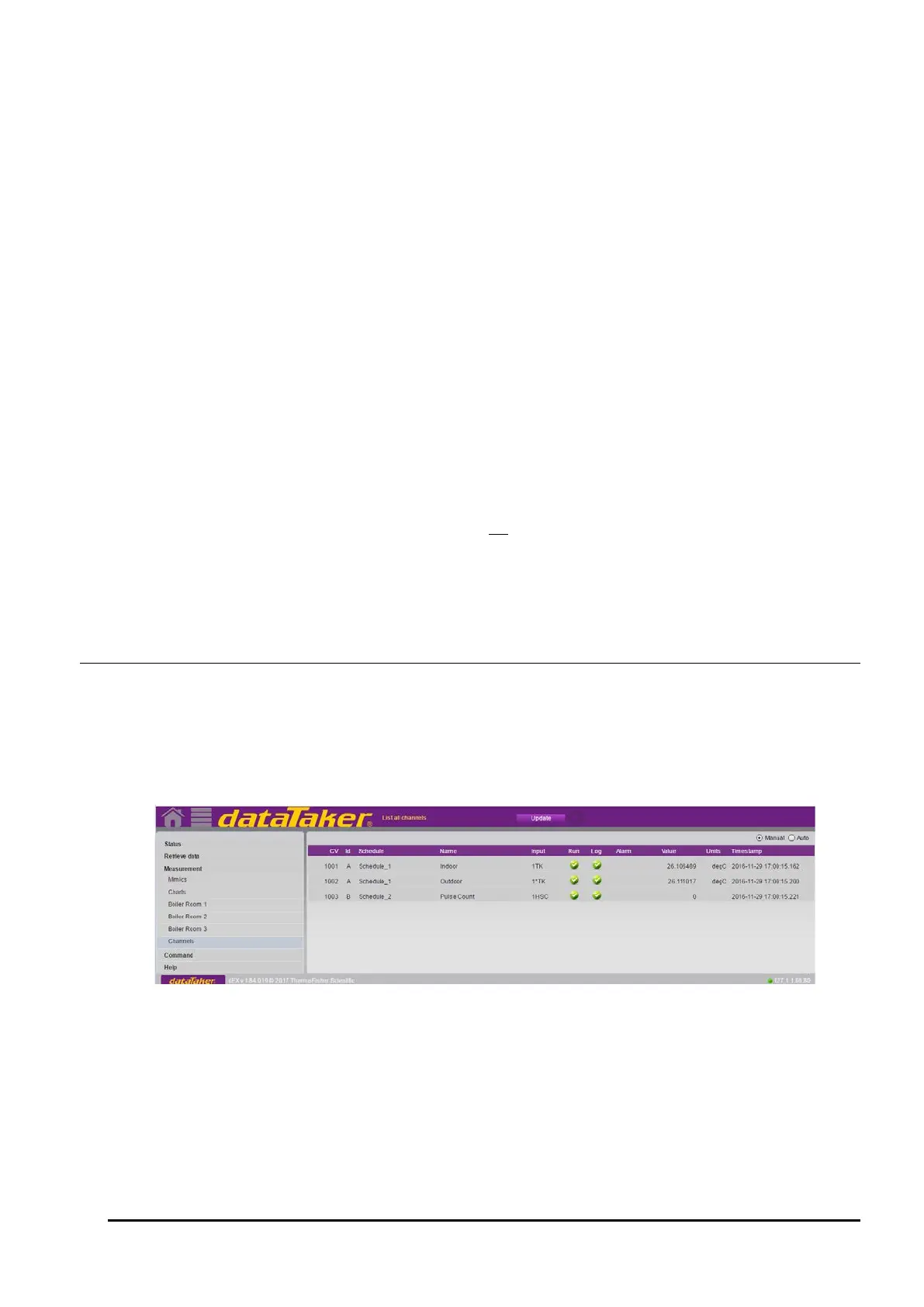 • data values for first schedule (zero or more fields, one for each loggable channel). Numeric data values are