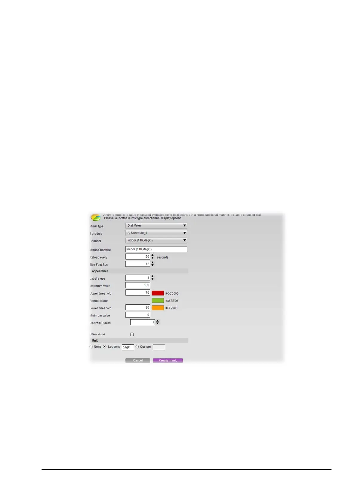 will bring up a configuration dialog box. The contents of this dialog will vary according to the mimic type. A typical mimic