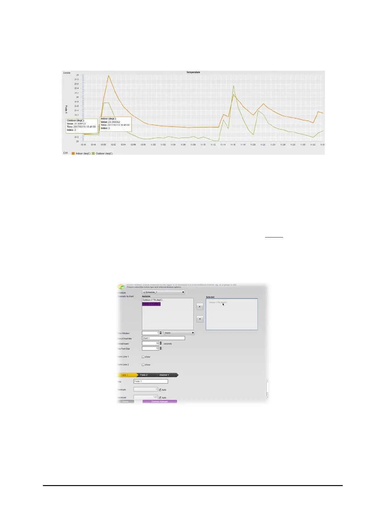 Up to 5 different channels can be plotted on each chart mimic, and up to two Y axes can be defined.
