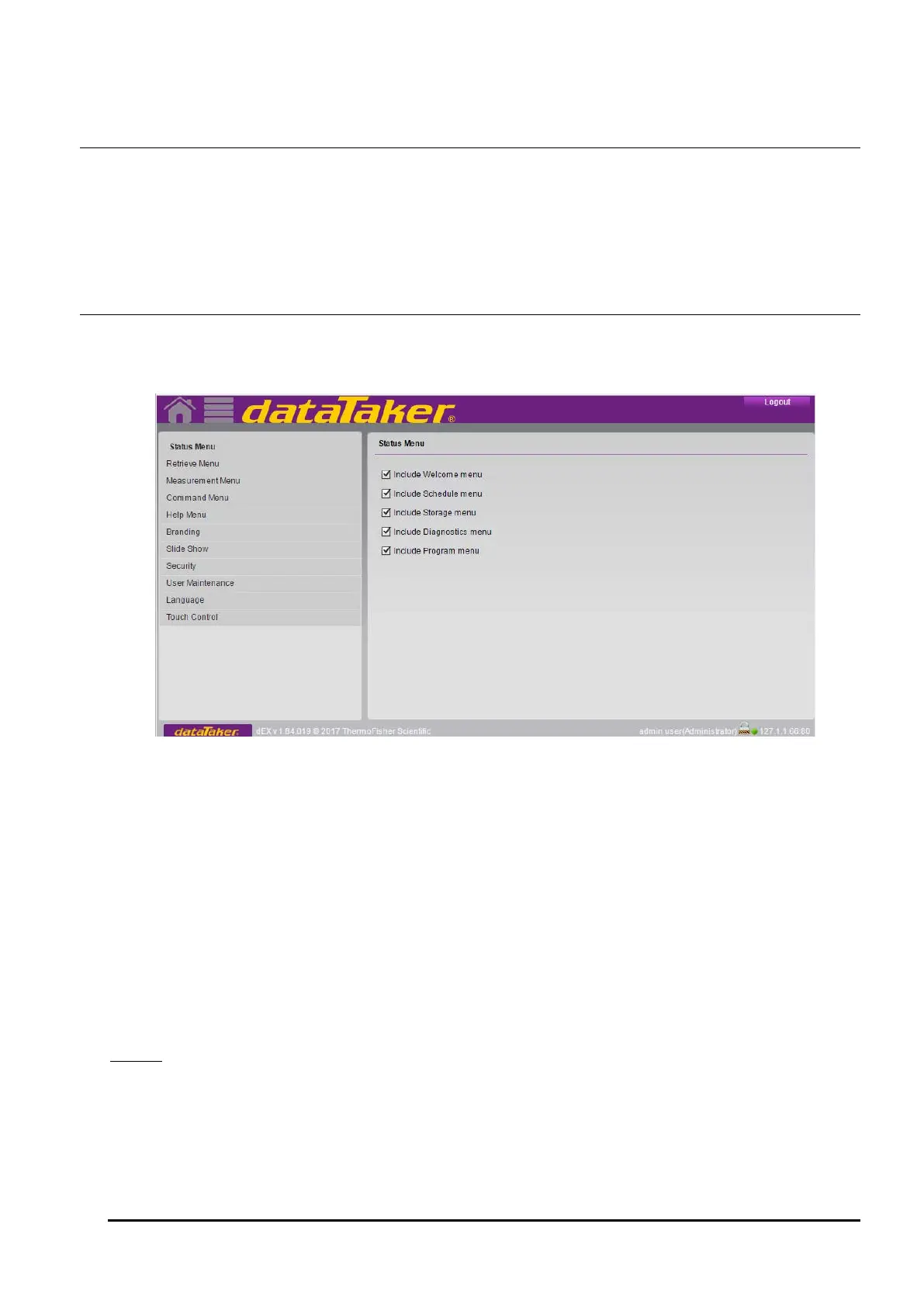 • Selected menu items can be disabled to help prevent unauthorised or accidental changes to the logger