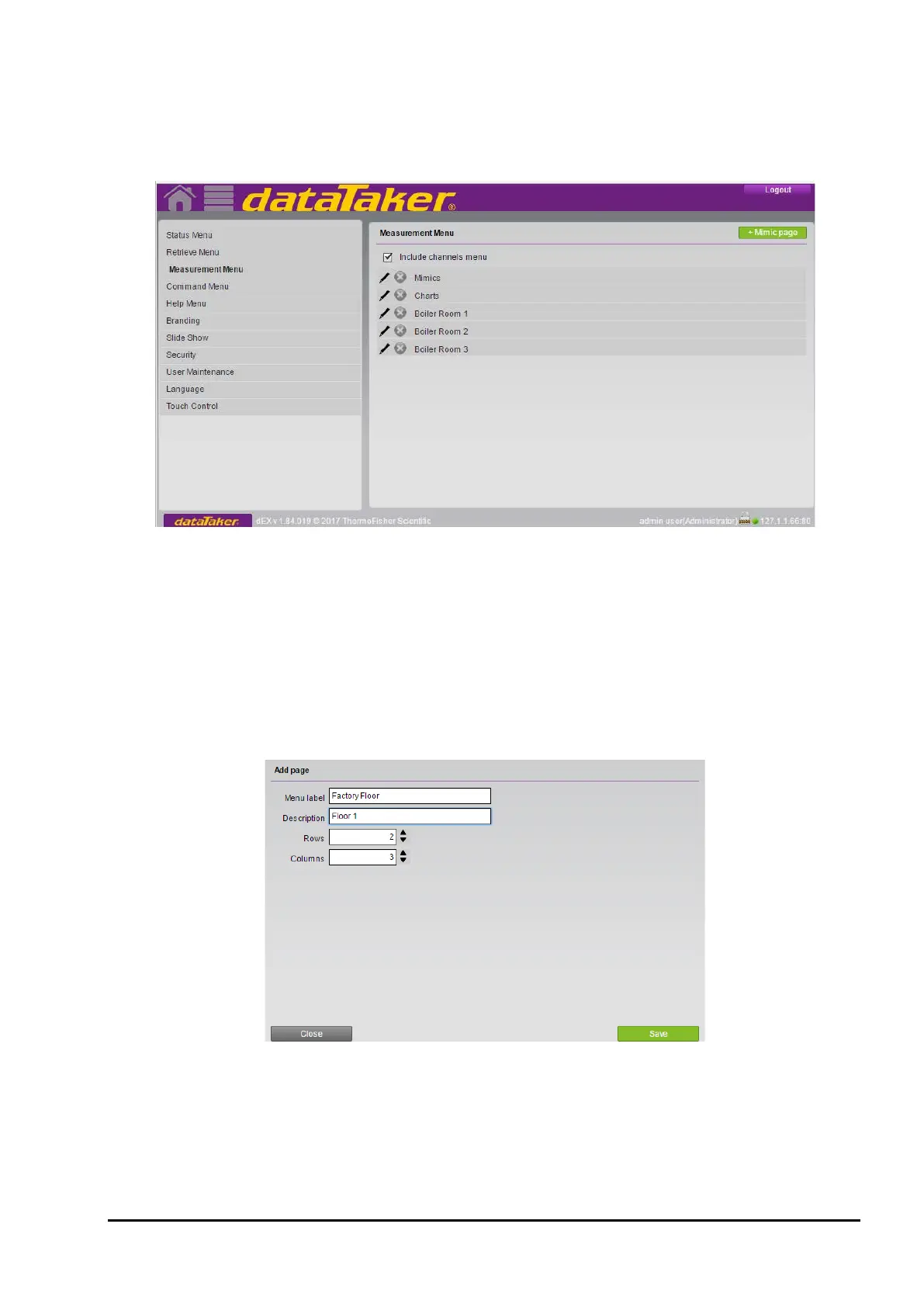 appear in the web interface Measurement menu. In the example shown in Figure 55, the two default mimic pages are