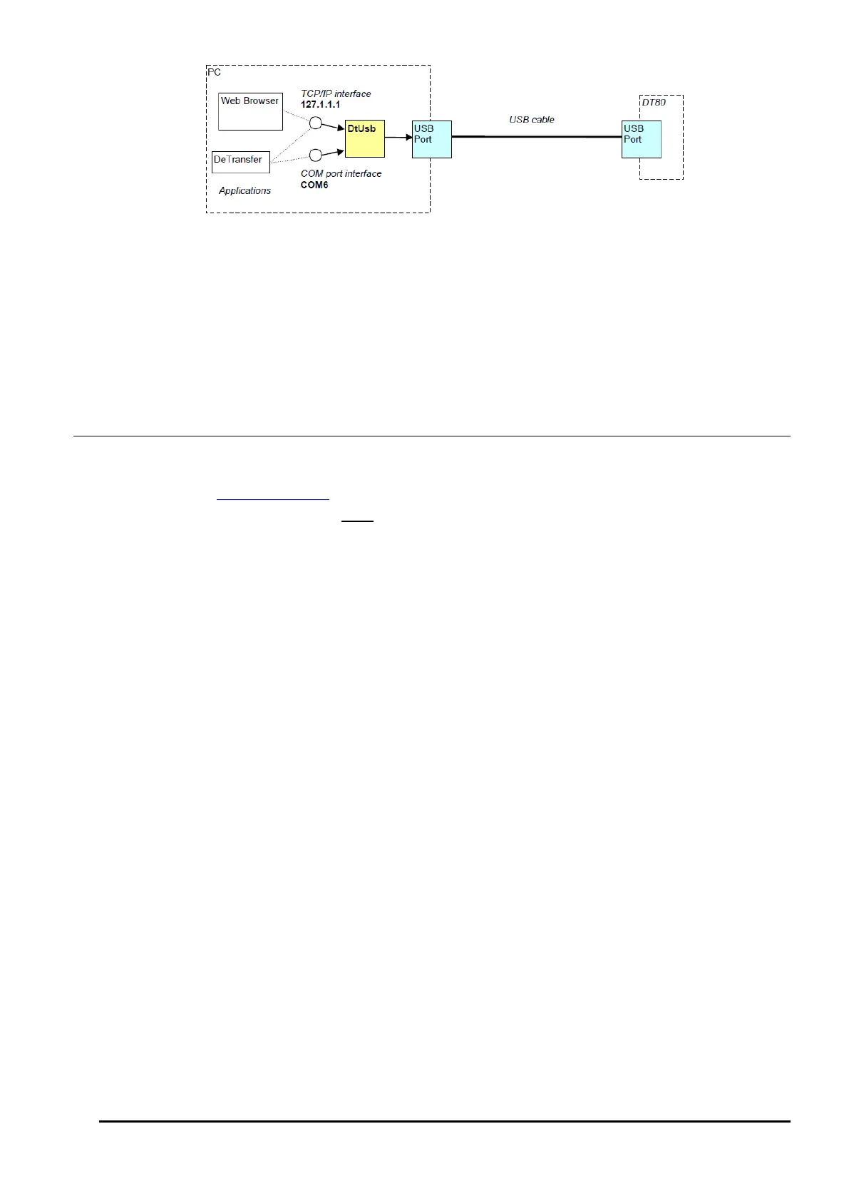 web browser) to connect to the DT80. DtUsb does not support connections in the opposite direction, i.e. where the DT80 connects to a