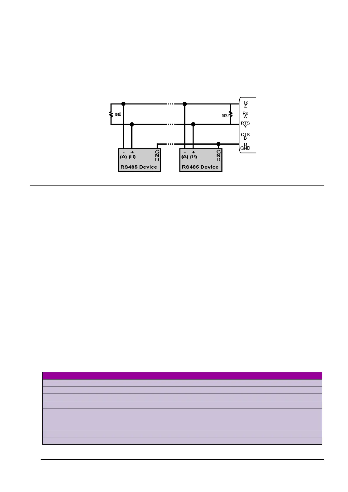 each device. For long cable runs or high baud rates a 100Ω termination resistor at each end of the main cable is
