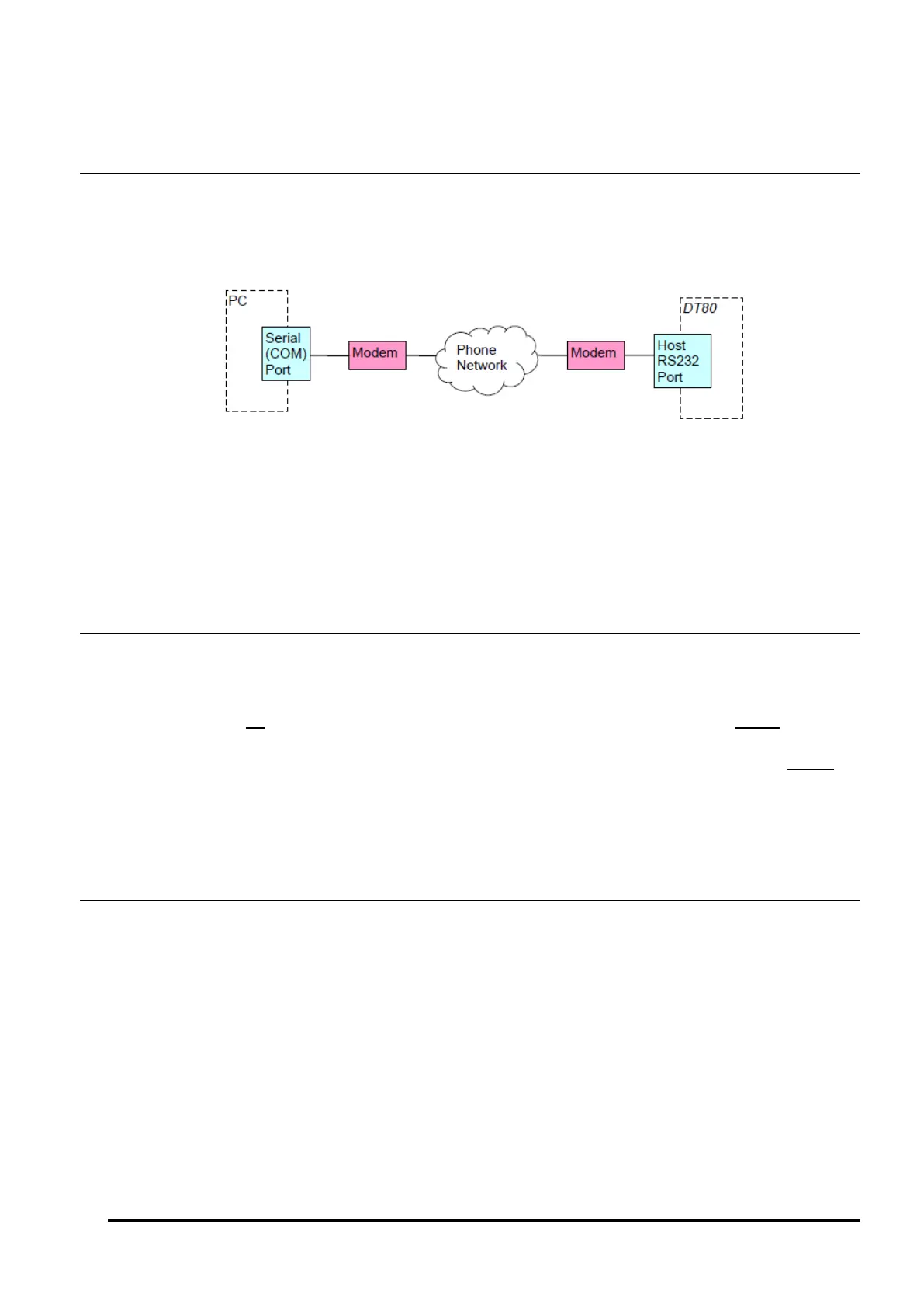 GSM (cellular) or satellite communication. This is known as a modem connection to a remote DT80.