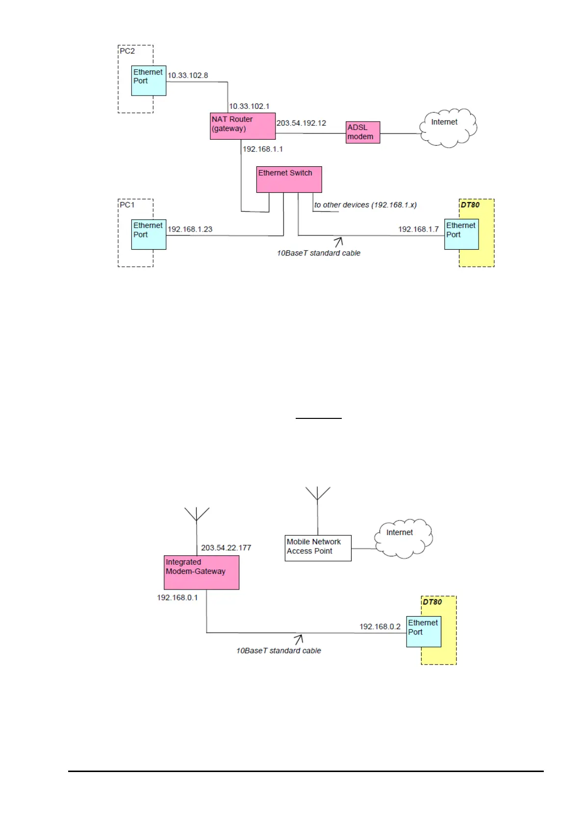 In the above example, the DT80, PC1, a router, and possibly some other devices are all connected on the same private