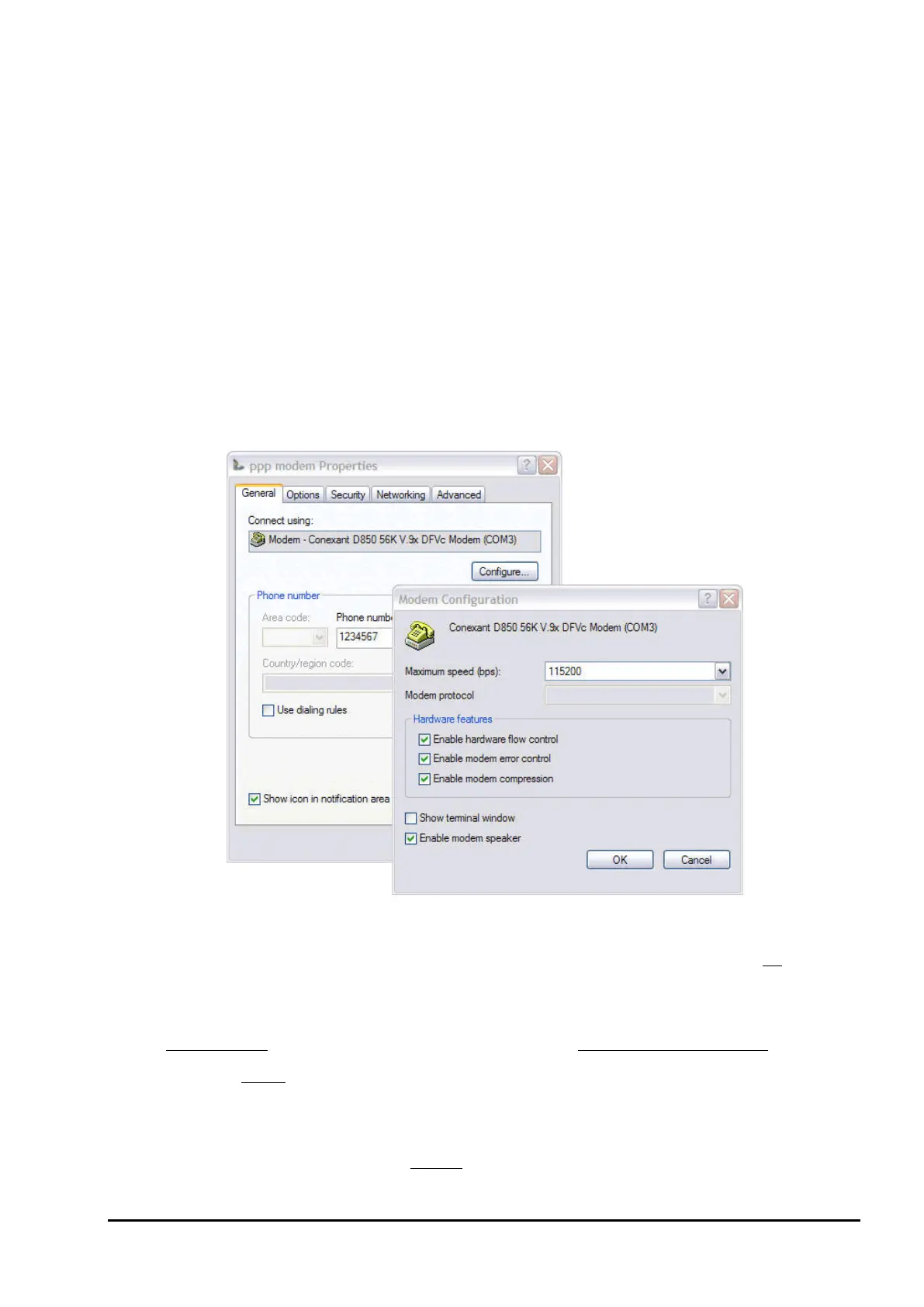 Figure 105: PPP Modem Configuration for modem connection (Windows XP)