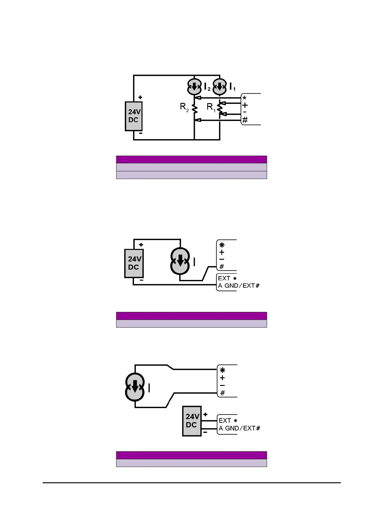 Figure 131: Wiring for independent current using internal shunt and external excitation