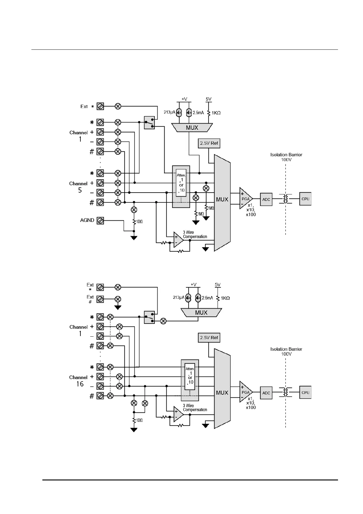 A simplified block diagram of the DT80/81's analog sub-system is shown below. In this diagram the circle-X symbols