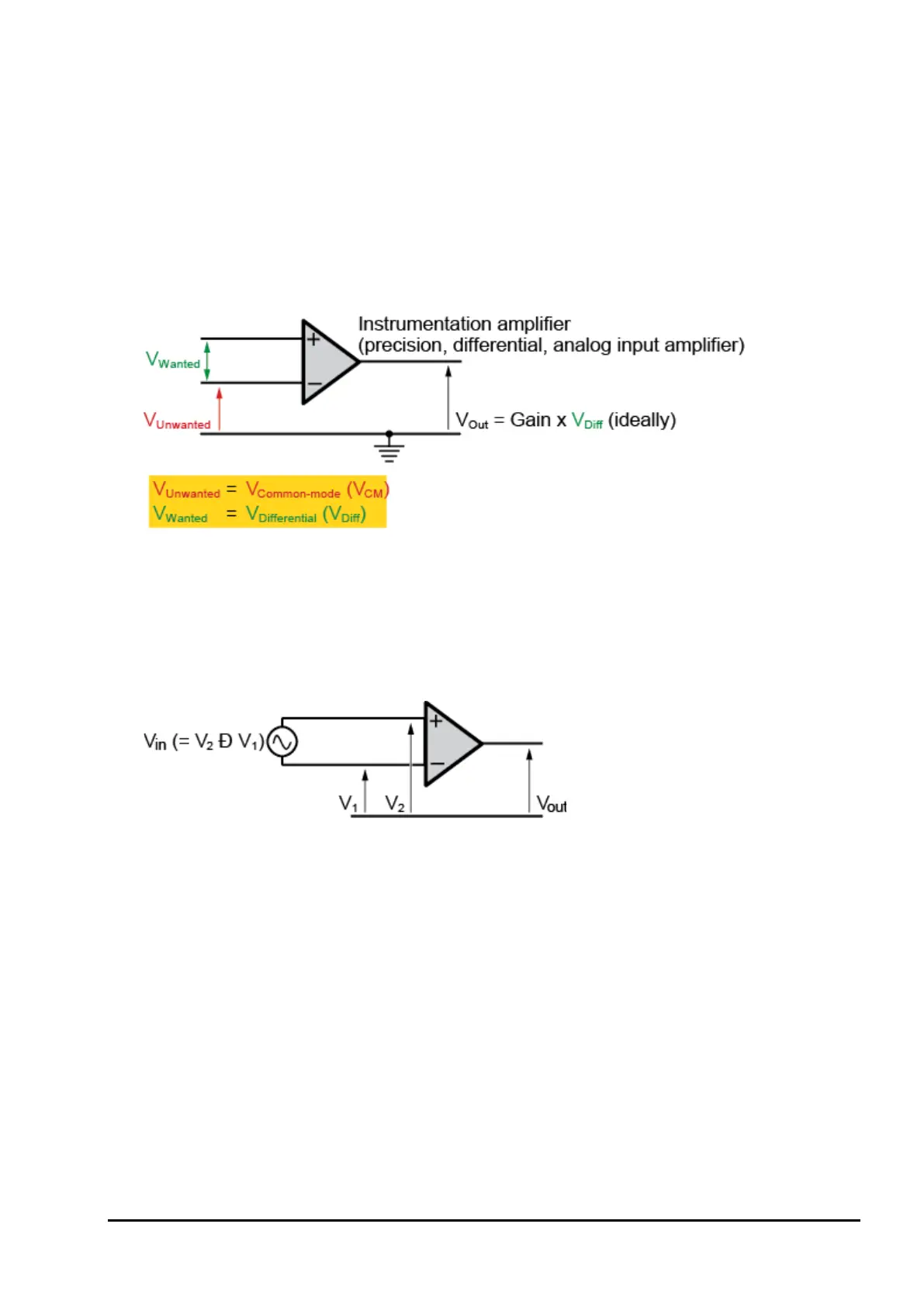 • It rejects most of the common-mode voltage (the unwanted signal). How well the amplifier does this is