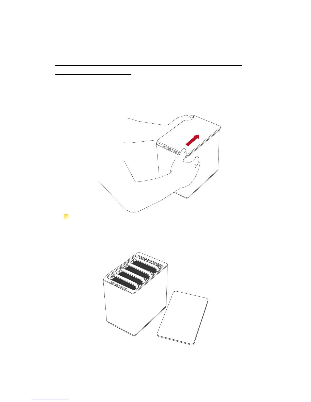 2. Lift the top lid up to remove and expose the Top View (or Disk Slots).