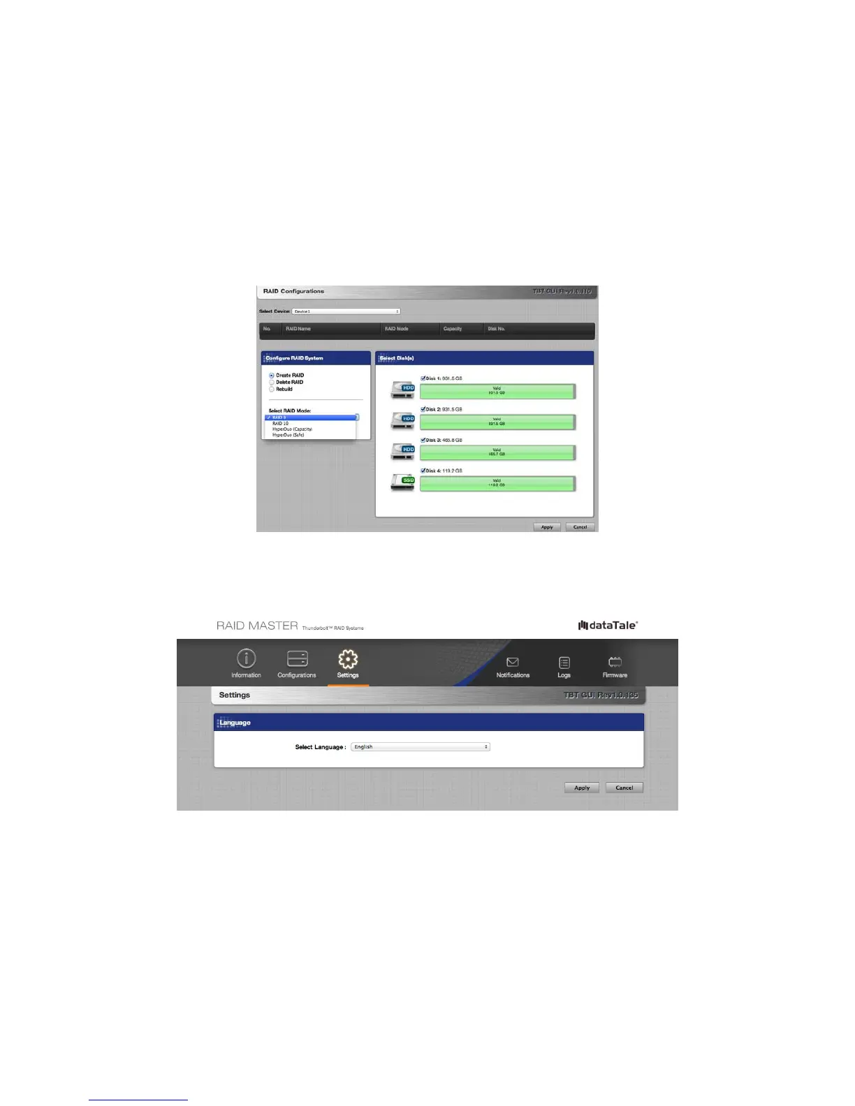 RAID CONFIGURATIONS: Provides a selection of which Devices to