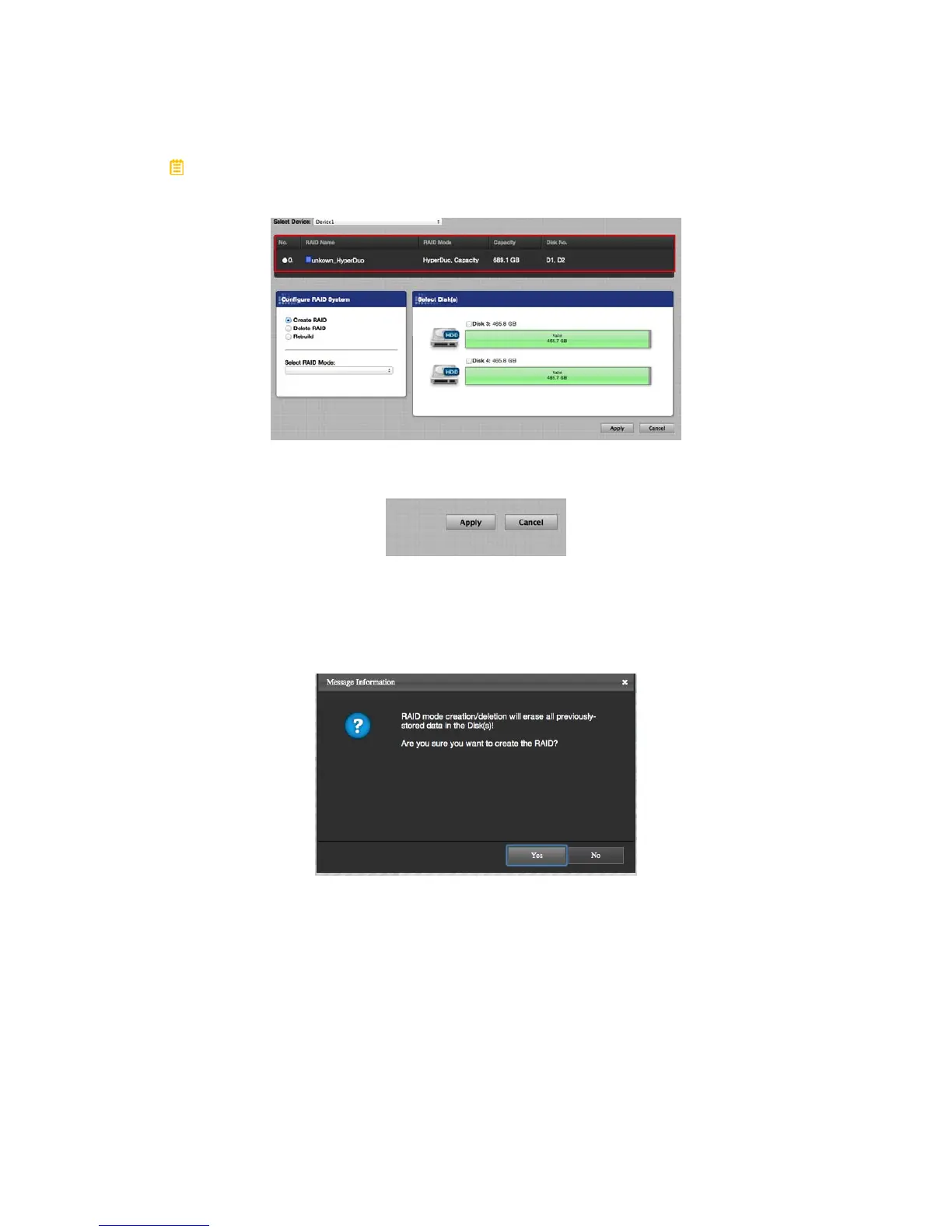 Disk(s)! Are you sure you want to create the RAID?” Click on the Yes icon