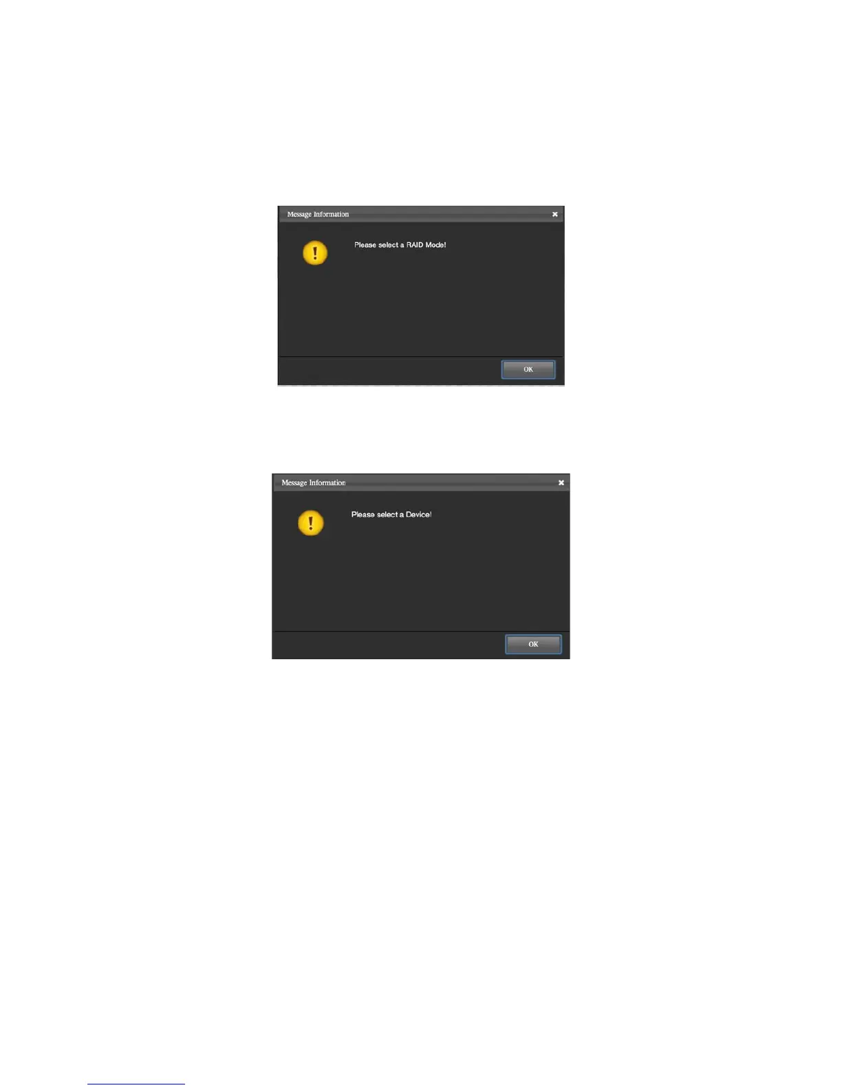 This Popup Window may appear as a warning whenever a RAID Mode