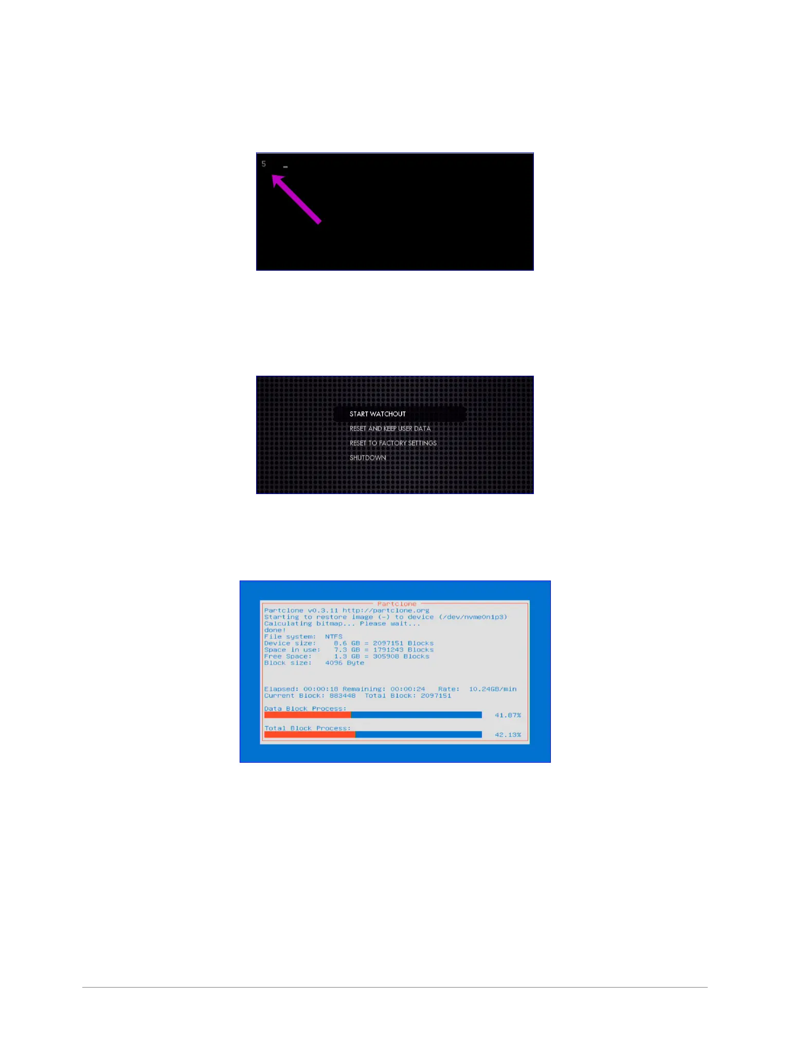 9. The WATCHPAX 40 will restart several times in order to congure the operating system and