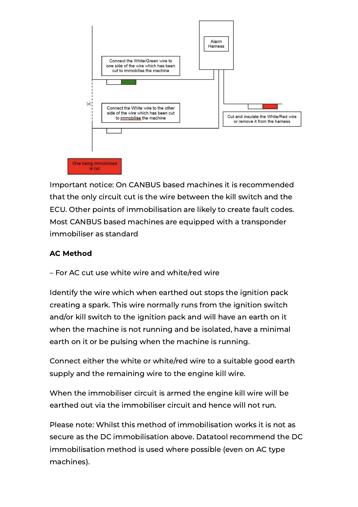 When the immobiliser circuit is armed the engine kill wire will be