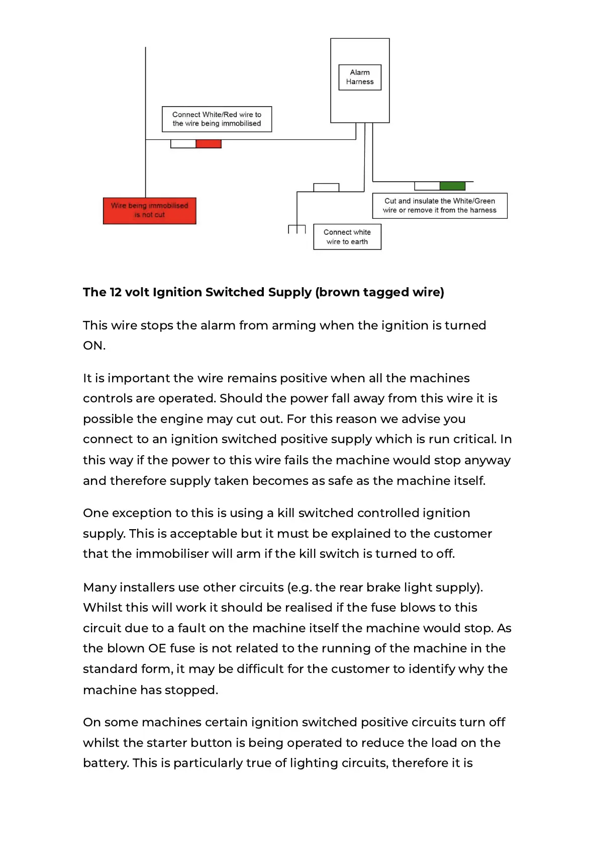 This wire stops the alarm from arming when the ignition is turned