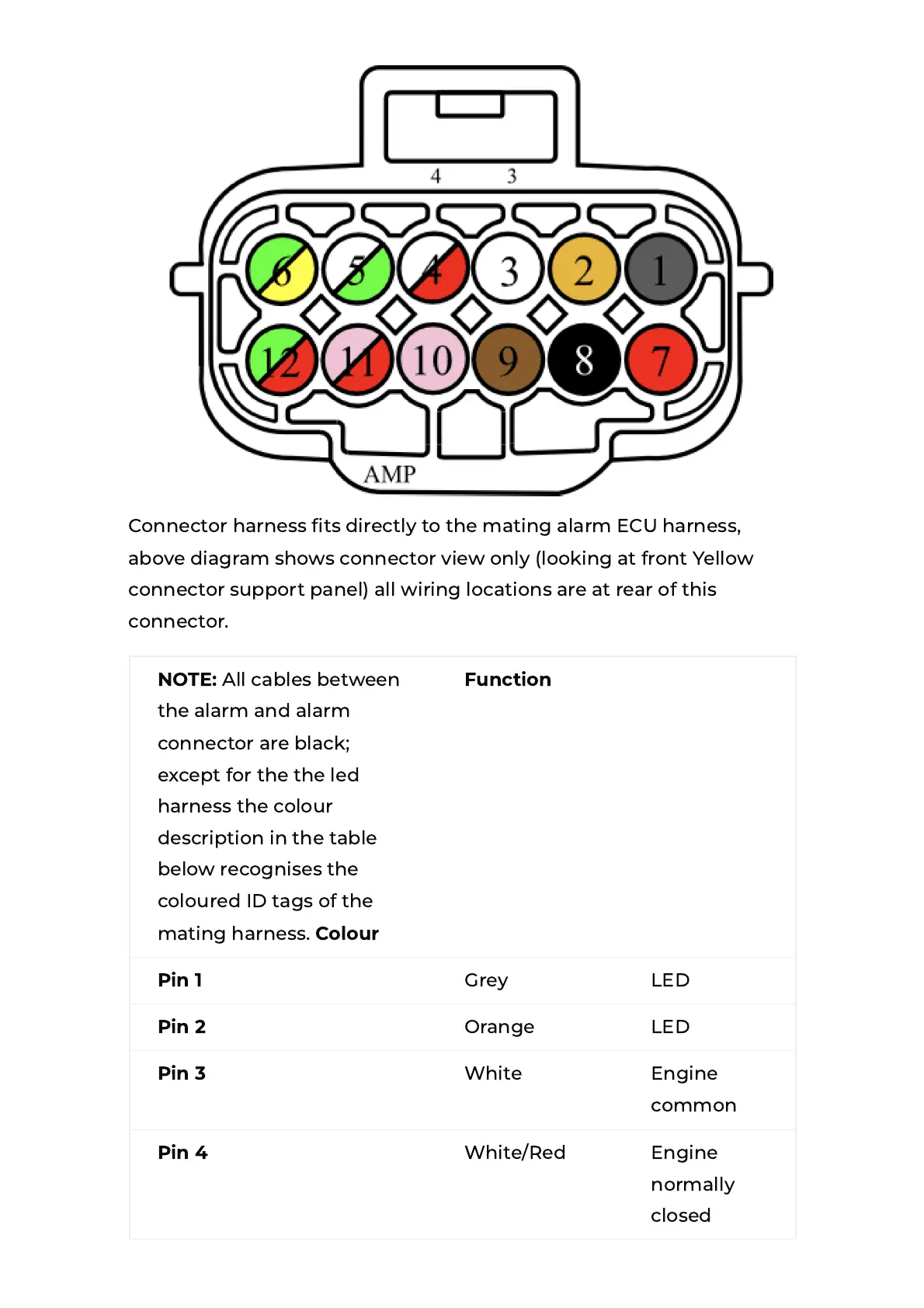 Connector harness ts directly to the mating alarm ECU harness,