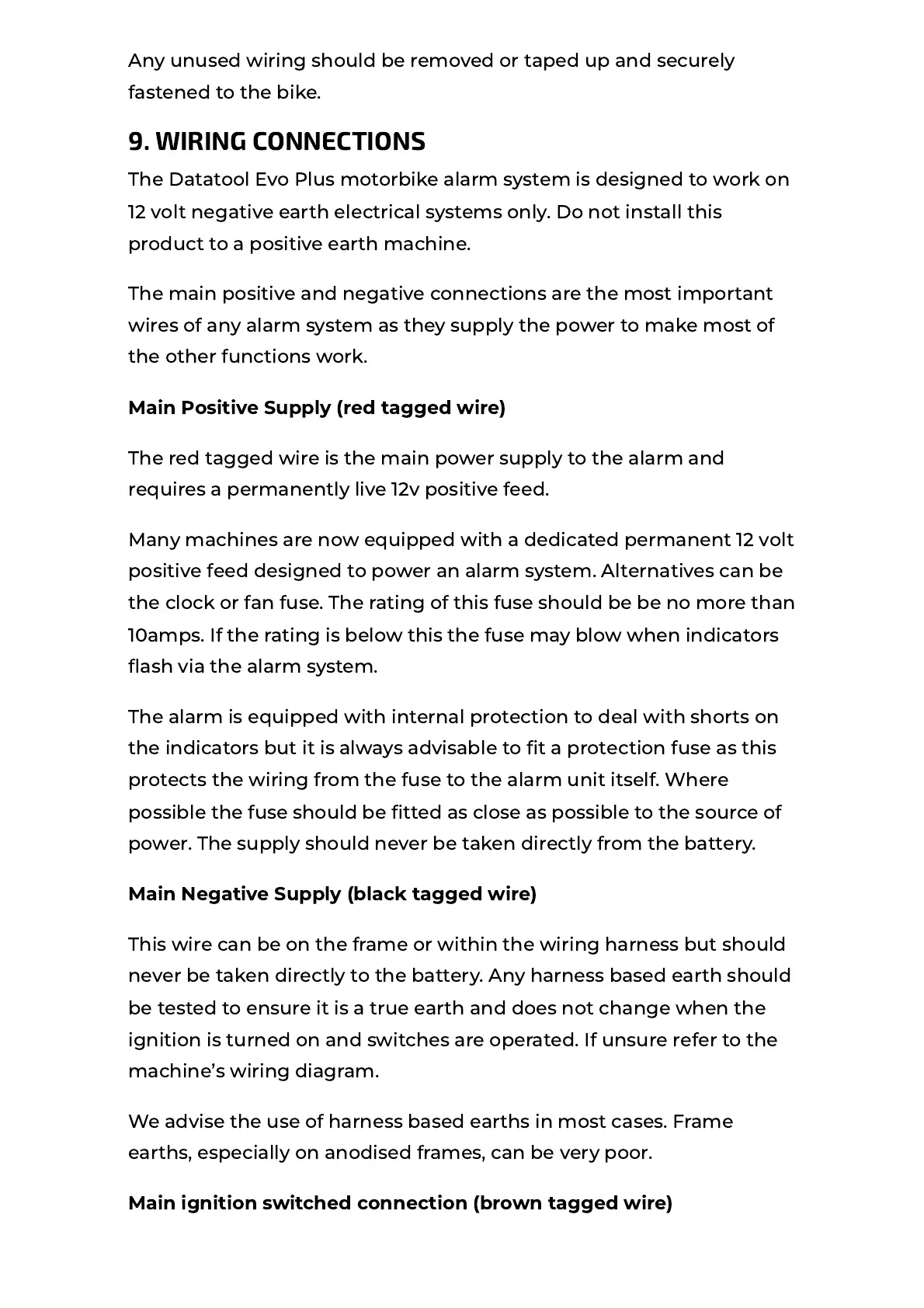 12 volt negative earth electrical systems only. Do not install this