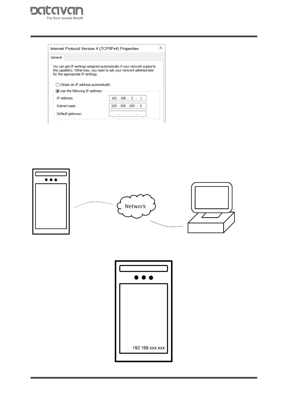 Select [Use the following IP address]. Fill [IP address] and [Subnet mask].