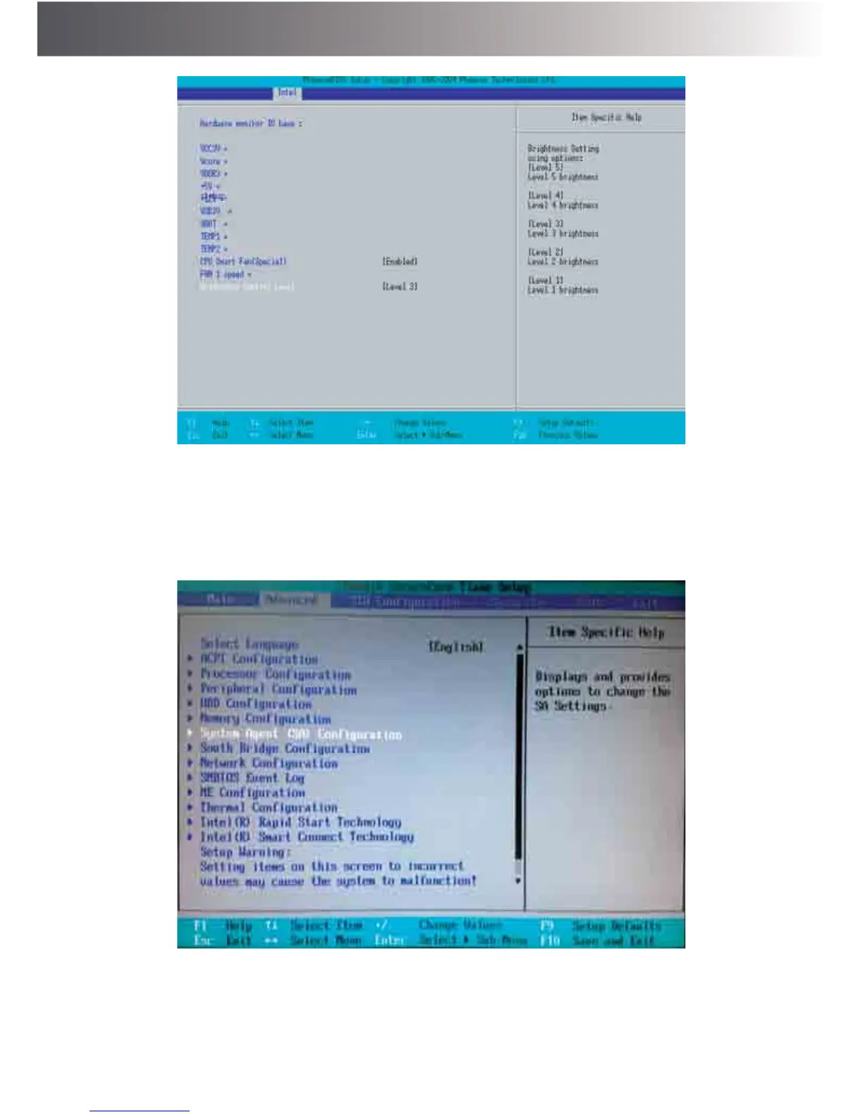 Datavan G-615S - G-715 Brightness Adjustment; BIOS Navigation for Brightness