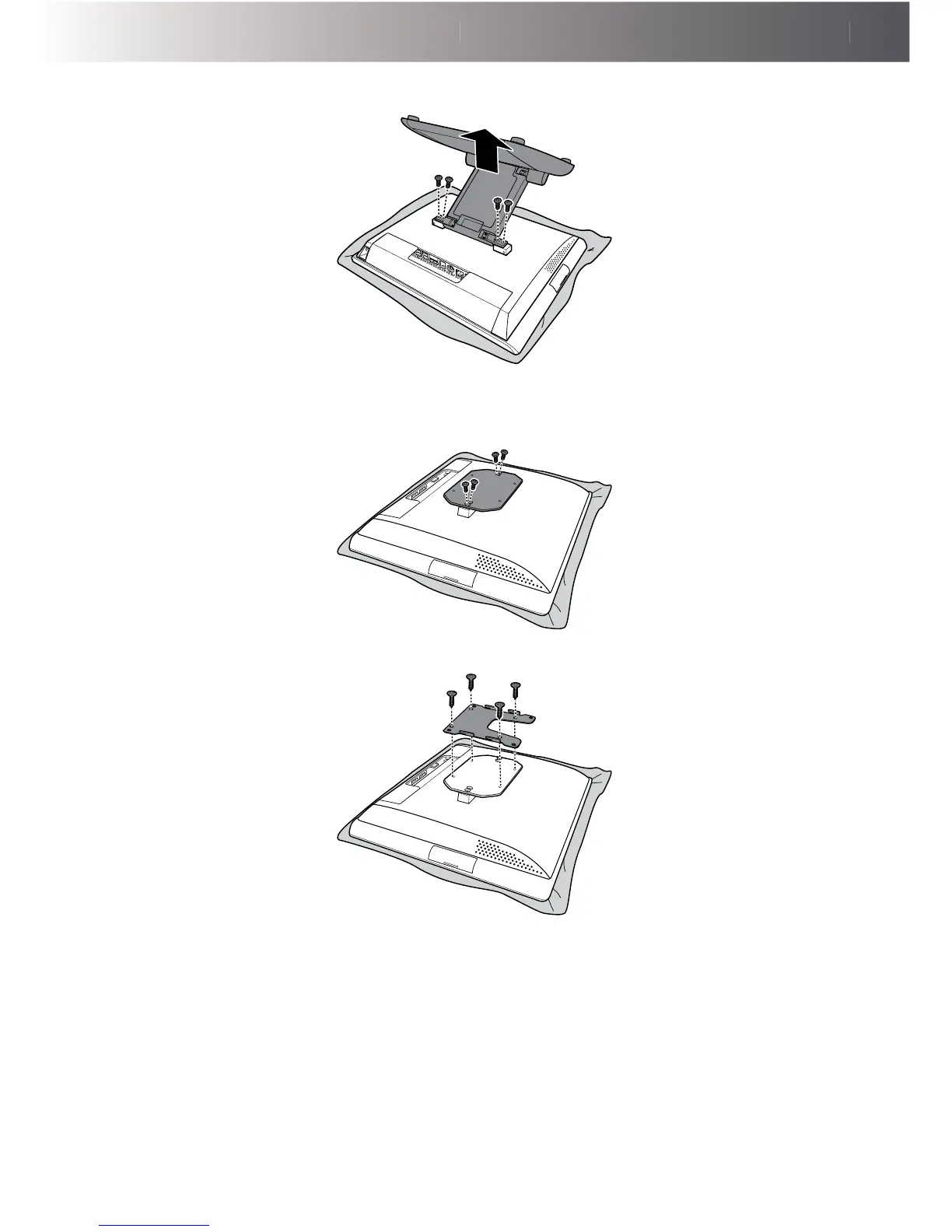 3. Align and install the VESA plate on the back of the Touch Panel using four screws