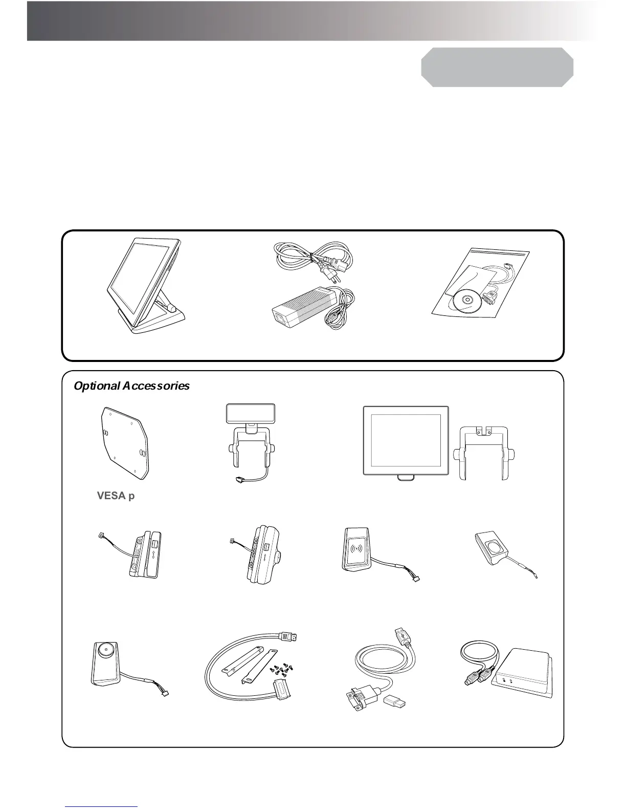 Before setting up your Touch Terminal, check that the package contains the following items. If any