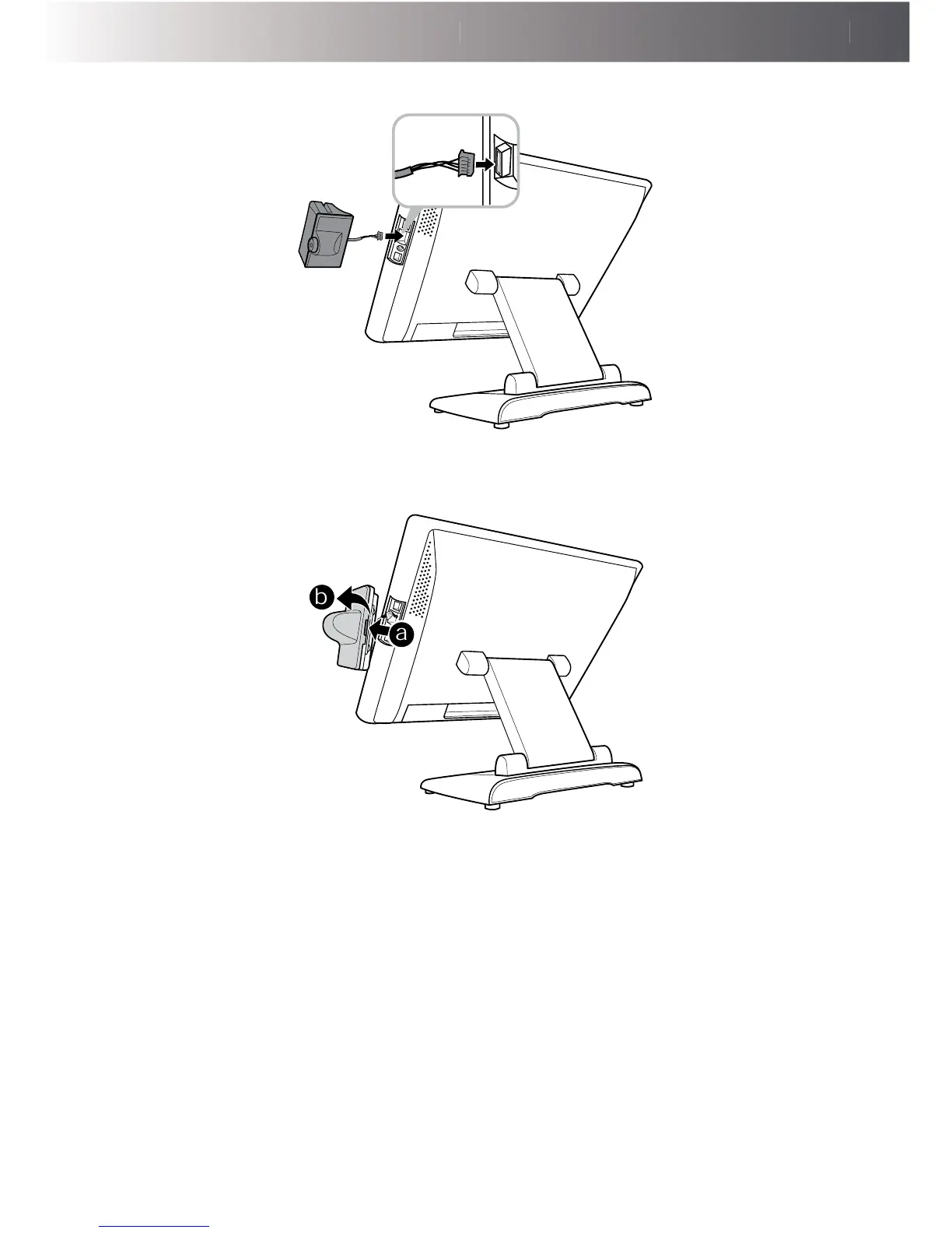 3. Press the latch down to disengage the reader cover from its main unit. (a)