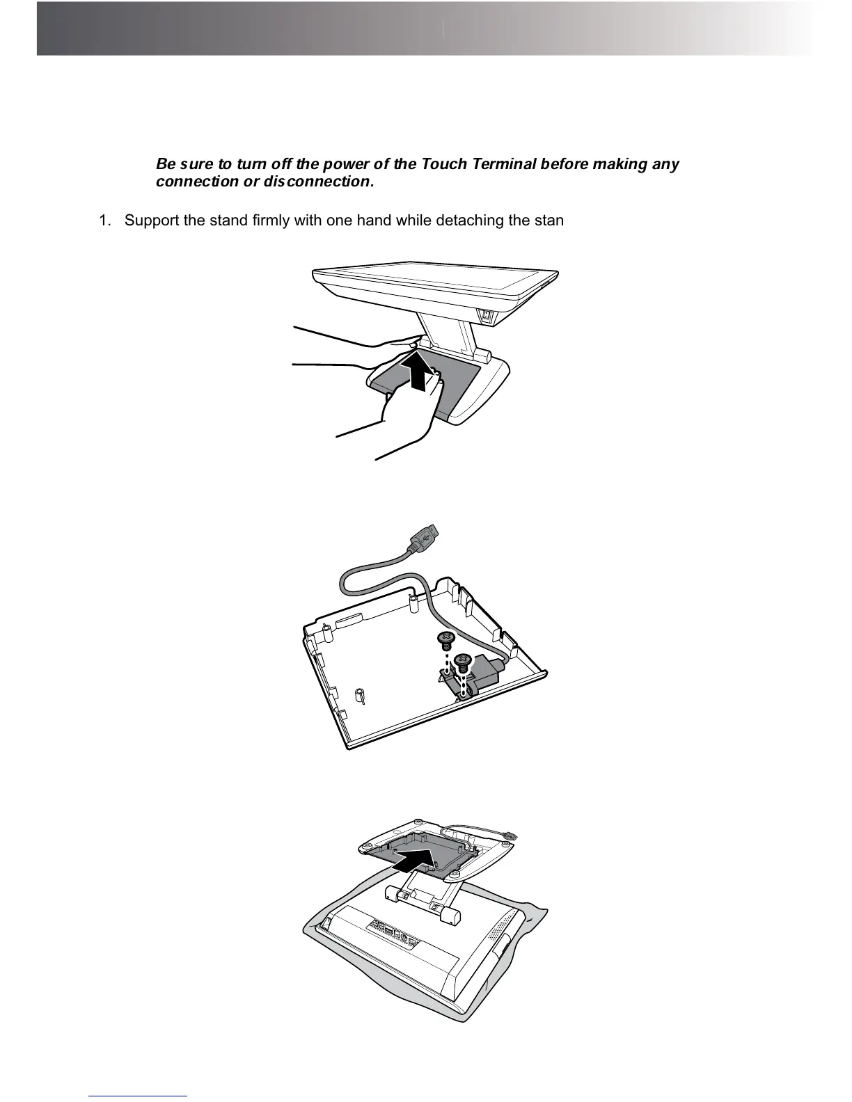 1. 6XSSRUWWKHVWDQG¿UPO\ZLWKRQHKDQGZKLOHGHWDFKLQJWKHVWDQGFRYHUIURPWKHVWDQGZLWK