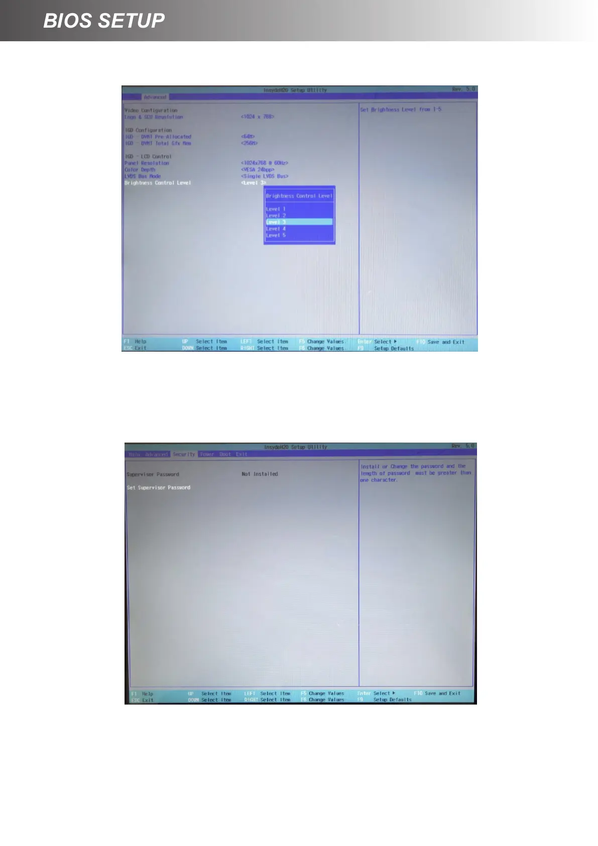 Security Tab for setting Supervisor Password
