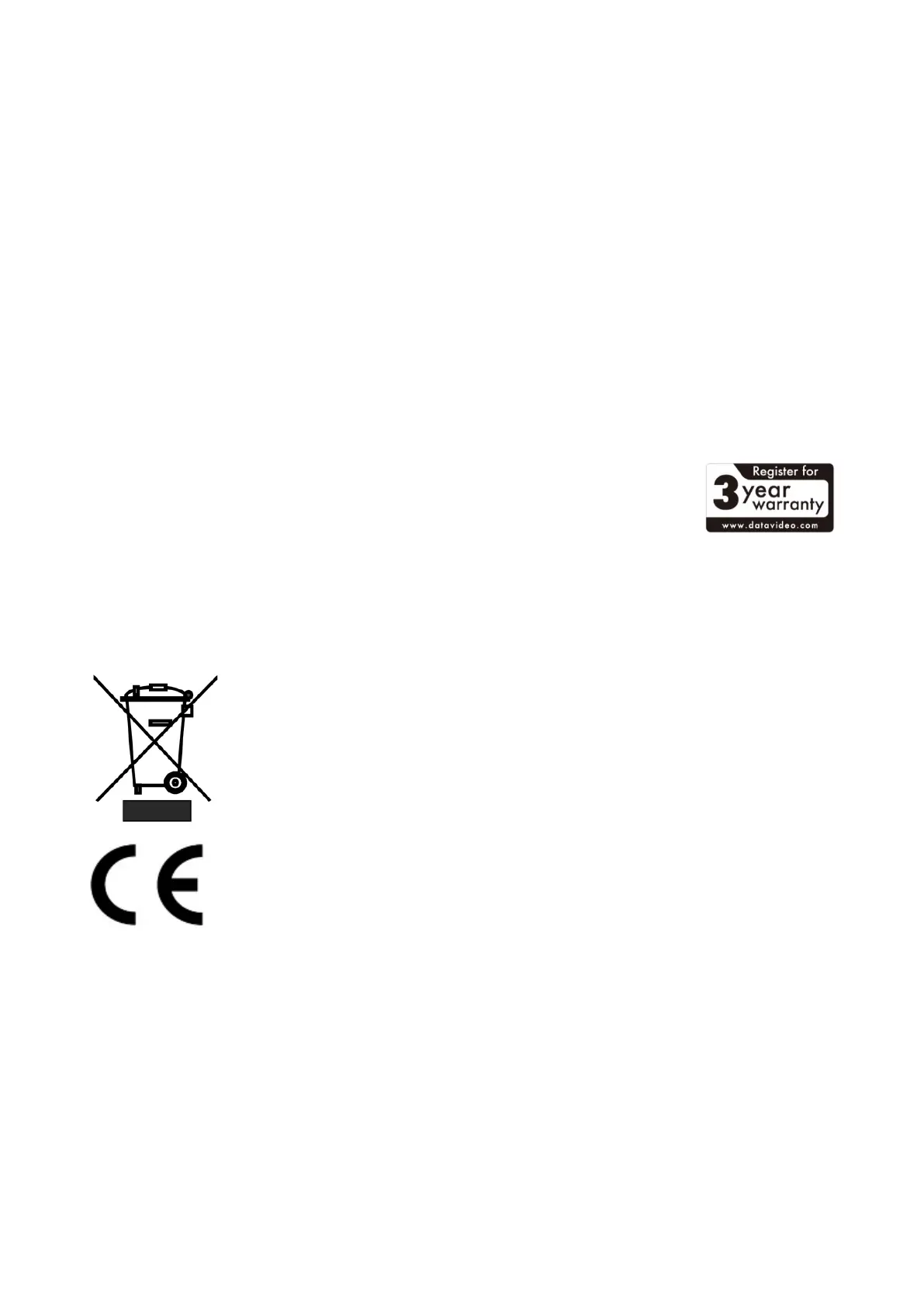 • The three-year warranty must be registered on Datavideo's official website or with your local