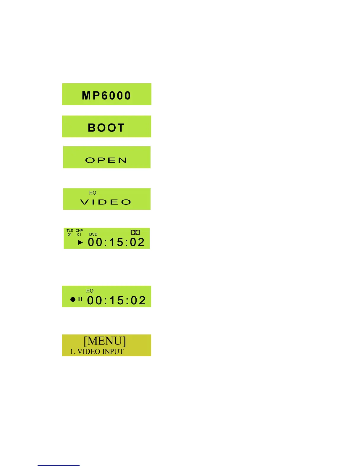 TheLCDonthefrontpaneloftheMP6000MDdisplaysvariousformsofinformation. Herearesomeofthe