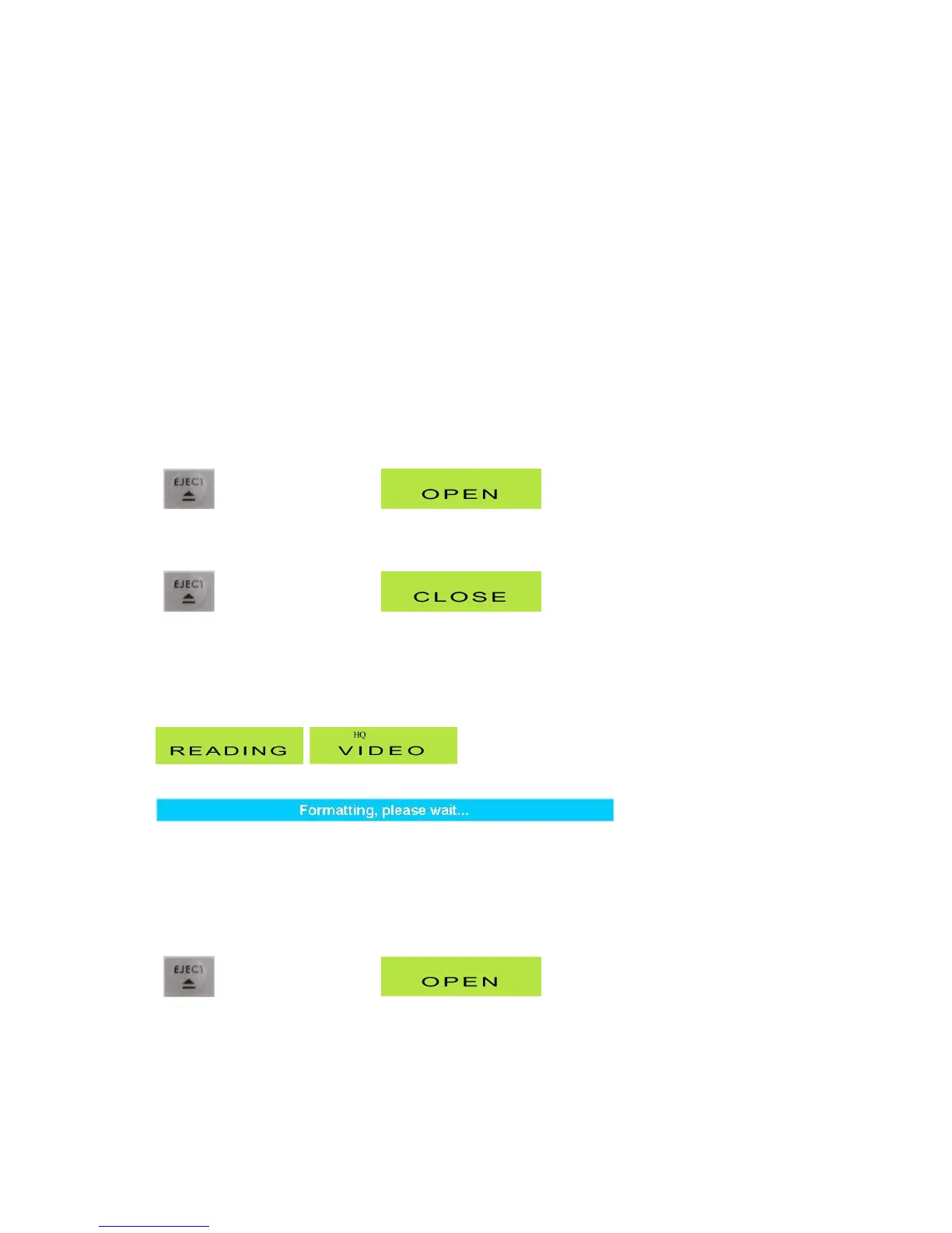 PresstheEjectbutton,themessageOPENwillbedisplayedontheLCDdisplay,andthedisctraywill