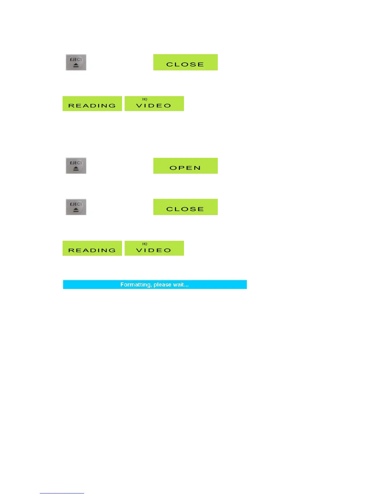 PresstheEjectbuttonagain,sothatthetrayretracts,andtheCLOSEmessageappears.