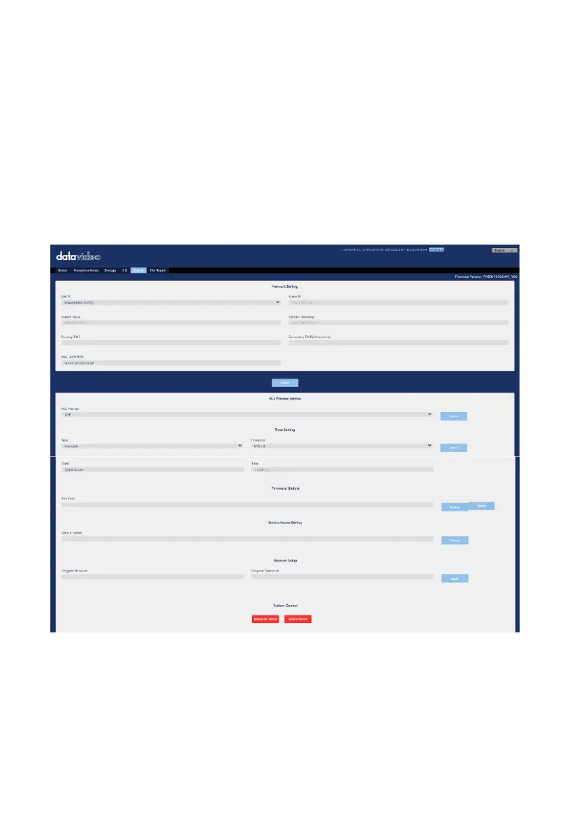 also provides HLS Preview setting, Time Setting, Firmware Upgrade, Device Name