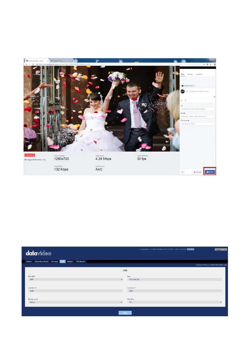 streaming the video to the Facebook page.