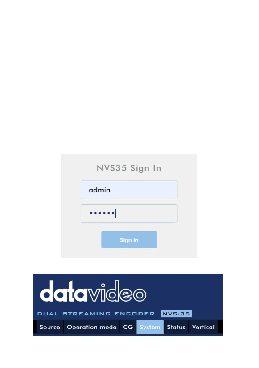 1. Log in the NVS-35 web interface with the following credentials: