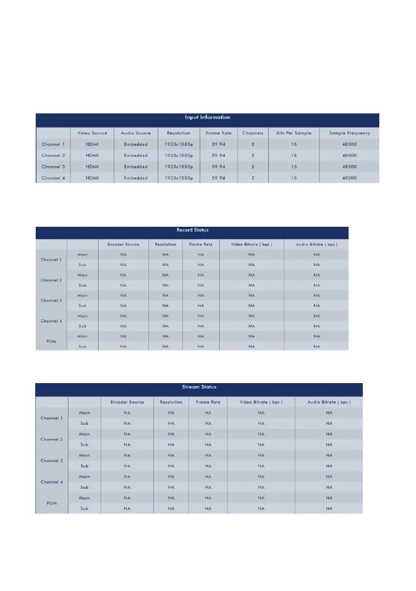 Stream Status for Channel 1 to Channel 4 and PGM