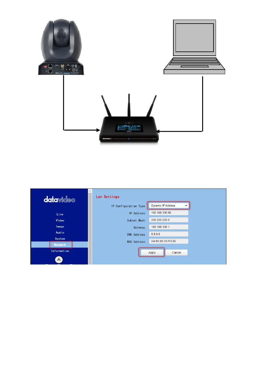 In order to enable the DHCP mode of the camera, please select “Dynamic IP